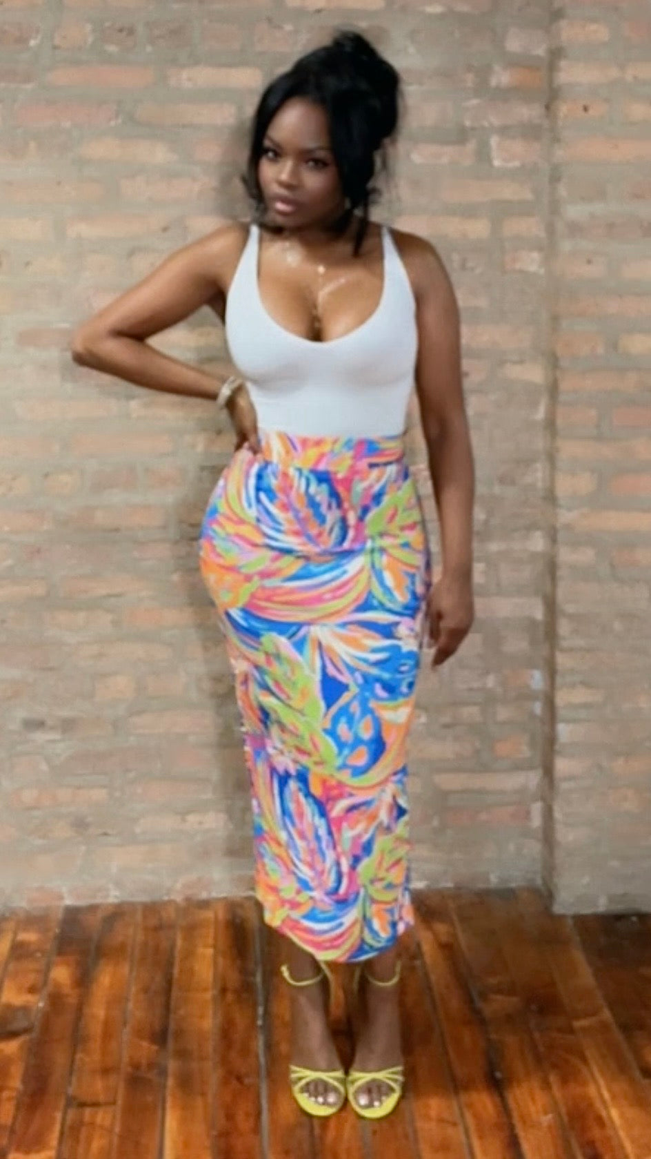 Turn heads in this bold leopard print maxi skirt designed to showcase your style. The tiered silhouette flows elegantly while hugging your curves in all the right places, and the elasticized back waistband provides a secure, sculpted fit. The woven fabric drapes beautifully to accentuate your figure, making this the perfect statement piece for nights out or confident everyday wear. Pair it with your favorite top and watch the compliments roll in.